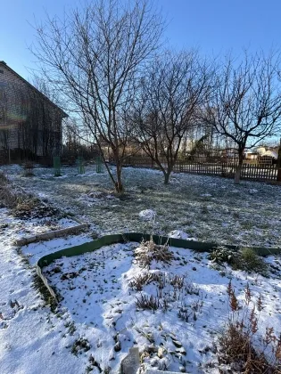 На участке растут фруктовые деревья и кустарники.Много декоративных растений и многолетних цветов