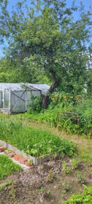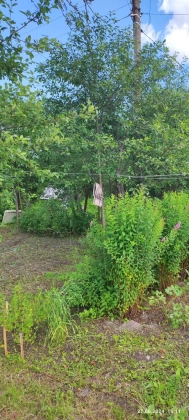 На участе растут плодовые деревья и кустарники.
