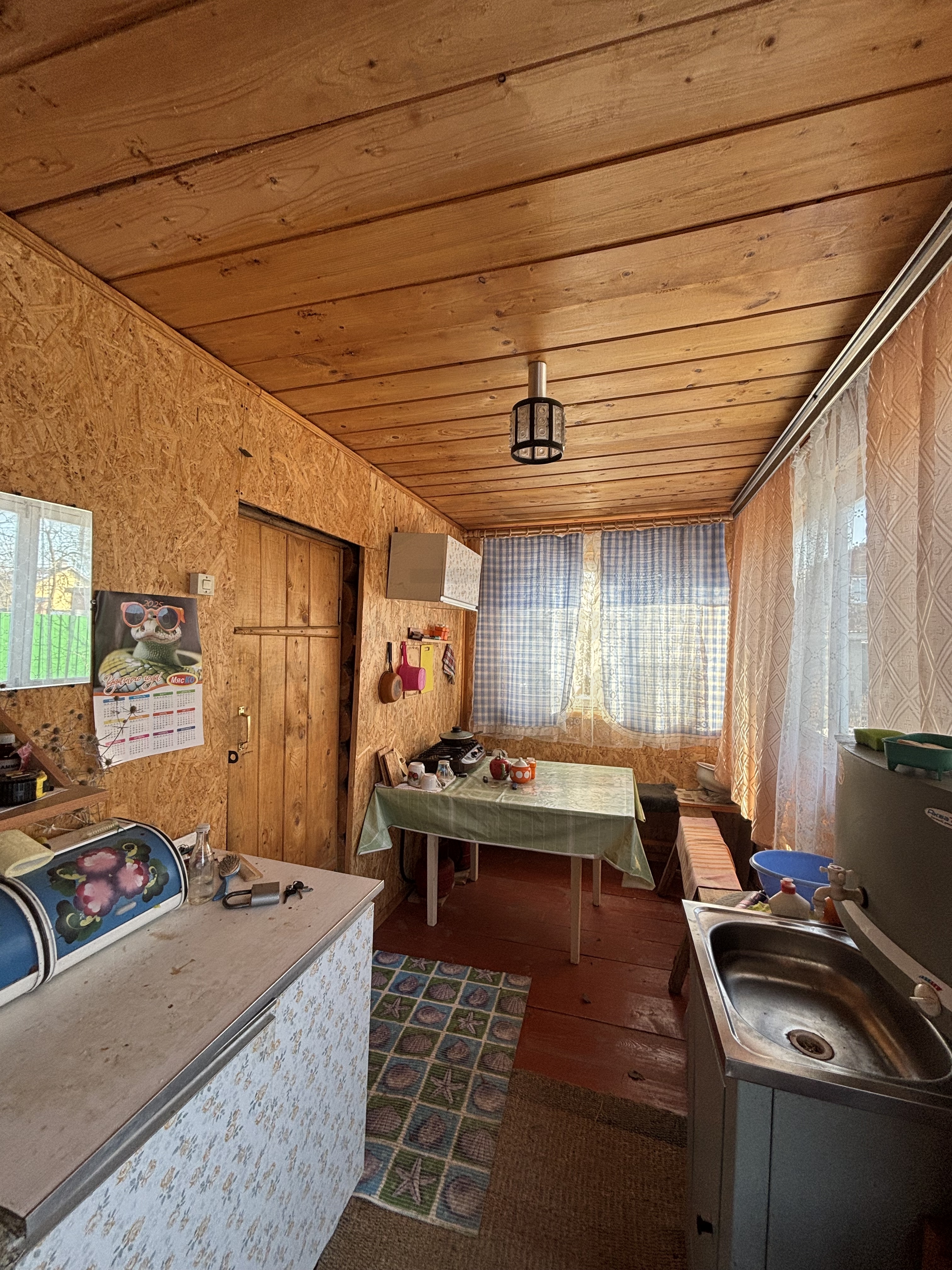 • Внутри дома две комнаты, оформленные в светлых тонах, что создает атмосферу уюта и тепла.