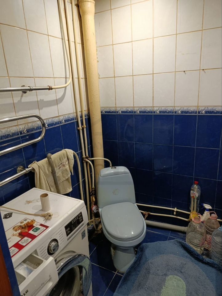В квартире совмещенный санузел, отделанный плиткой.
