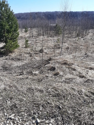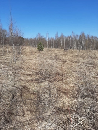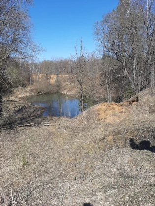 Рядом пруд - доступная вода для полива, а также родник с очень вкусной питьевой водой. Есть колодец под септик. 9-ть колец. На участке распланированы грядки, березовый островок, посажены сосны. Есть кусты ежевики.